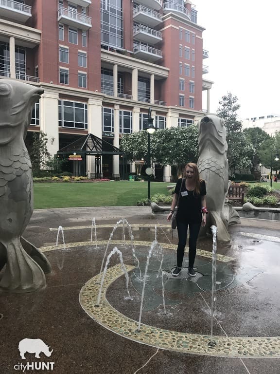 In Charlotte’s bustling Uptown, teams visited Romare Bearden Park. This park is an oasis of greenery and artistry, with its beautiful waterfall being a focal point. Teams had to wander the park until they found the famous Romare Bearden Park waterfall. Once they found it, contests were challenged to take a picture in the splash zone of the waterfall without getting wet!