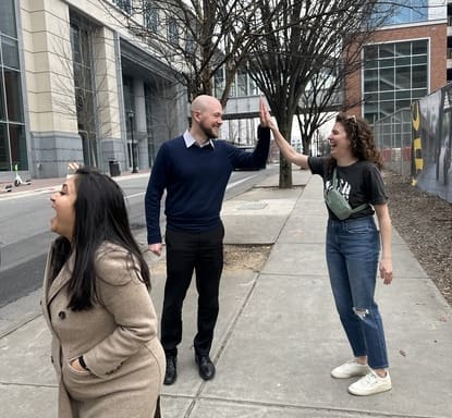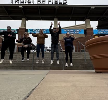 Teams ventured to the Spectrum Center, which is home to the Charlotte Hornets NBA team! This location was the perfect backdrop for a basketball-themed challenge. Teams were tasked with capturing a photo of a basketball-style ‘Jump Ball’ moment in front of the arena. Participants had to simulate the excitement of the game’s start, with two members posing as if vying for the ball.