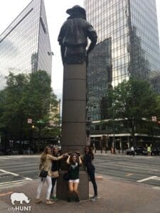 In the heart of Uptown Charlotte, teams were challenged to find and take a photo with the Four Corner Statues in Independence Square. These iconic statues at the intersection of Tryon and Trade Streets, represent commerce, industry, transportation, and the future. Each stands as a testament to the city’s dynamic history and promising future.