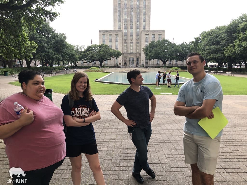 For this stop, participants visited the iconic Hermann Square, which is located in front of Houston’s city hall. The square is named after George Hermann, who passed away in 1914. He was an entrepreneur, real estate investor, and industrialist in Houston. The historic square takes up an entire city block in downtown Houston. Hermann Square is a popular gathering place for lunch goers almost year-round and is also a prime location for special events. The challenge at this stop was to take a picturesque photo in front of the reflecting pool.