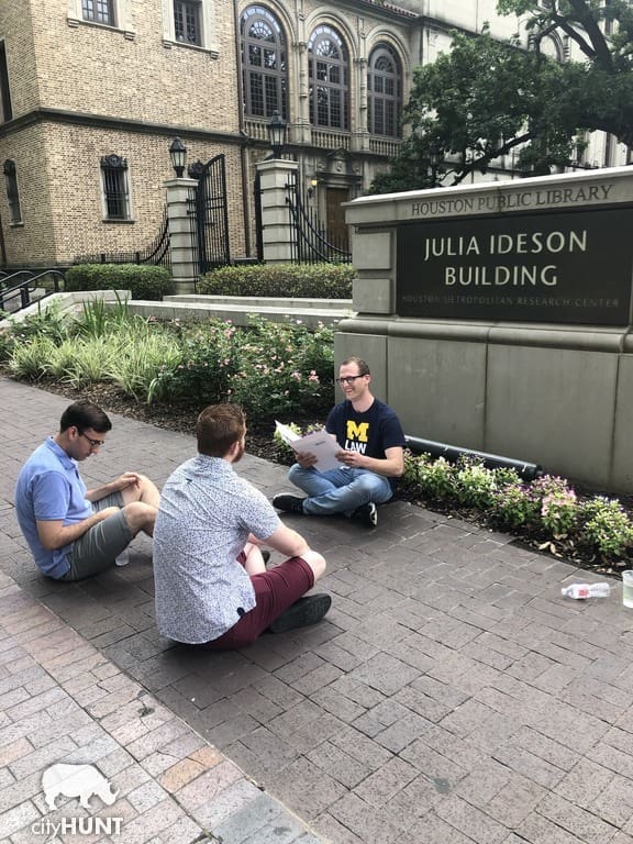 For the next stop, teams made their way to the historic Julia Ideson Building. Teams had to take a fun photo and have a little story time out front of the building. This public library is named after Julia Ideson, who was the first librarian and worked there for over 40 years! The beautiful Spanish-renaissance-style building was Houston’s only library from 1926 to 1926. It now houses many historical documents and archives.