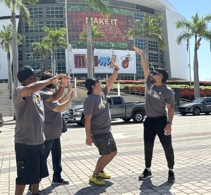 On the stop, scavenger hunters headed to Kaseya Center, which is the home of the Miami Heat! The challenge was to take a creative basketball-themed photo in front of the arena, showcasing their team spirit and love for the game. Whether it was mimicking a slam dunk, passing the ball, or striking a victory pose, this one was a memorable shot.