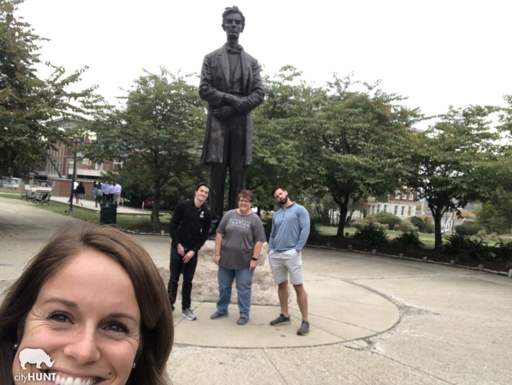 Clue: “This park features a panorama of floral displays changing from tulips, magnolia and crabapple in the spring, to annuals and perennials in the summer and to annuals mixed with chrysanthemums in the fall. The 2.31 acre park also features an 11-foot tall heroic bronze statue of Abraham Lincoln.” Answer: Lytle Park! Participants had to find this park, and when they got there, they were challenged with the task of taking a picture with the Abraham Lincoln statue.