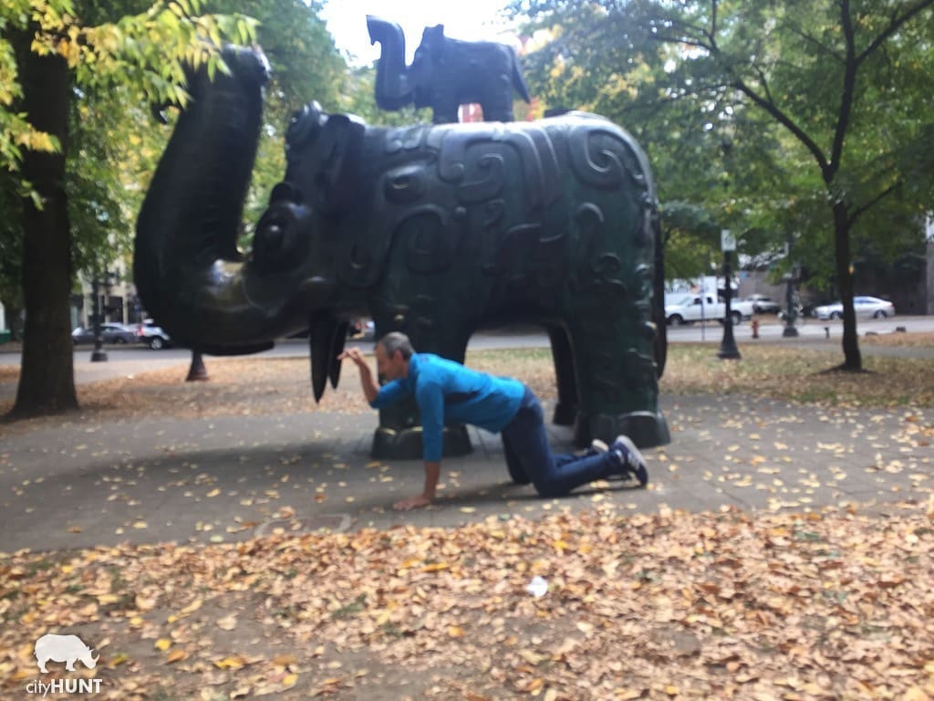North Park Blocks, is one of Portland’s oldest park sites. Initially, the area faced many developmental challenges, including legal battles and geographical obstacles. However, it is a beloved green space that is preserved and protected by the community. In October 2002, a significant addition was made to the park: the ‘Da Tung & Xi’an Bao Bao’ sculpture. This 12-foot bronze sculpture, depicts a young elephant standing on his father’s back, symbolizing safety and prosperity for future generations. The design, decorated with motifs from ancient Chinese mythology, represents universal peace and the deep cultural connections between Portland and China. For this stop, teams were tasked with exploring the park and taking a photo with this meaningful sculpture.