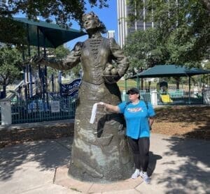 For this historical stop, participants ventured to Bayfront Park to find the impressive 10-foot-tall bronze statue of Julia Tuttle, known as the ‘Mother of Miami.’ Teams were challenged to capture a photo of a teammate looking out at the bay alongside the statue, symbolizing the shared vision of a thriving city that Tuttle foresaw in the late 19th century when the area was mostly swampland. This task was about honoring the legacy of a pioneering woman whose foresight and determination helped shape the Miami we know today.