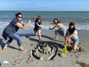Teams took a trip over to Mid-Beach for an epic sandcastle contest. Each team had to try to build the most elaborate sand castle possible. This means including motes, a few towers, a drawbridge, a unique flag, and whatever else their mind could think of. When they finished, the team had to take a photo proudly defending it!